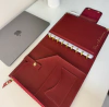 Medidas externas aproximadas da pasta no tamanho P (A5): 24 x 22,5 cm.